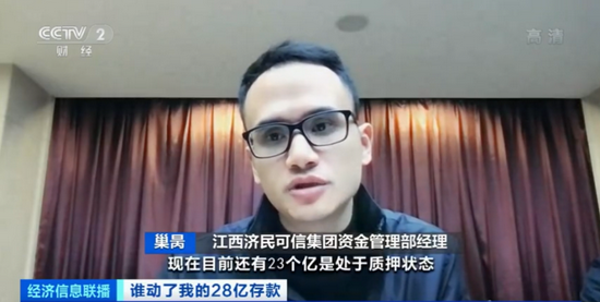 江西濟民可信集團資金管理部經(jīng)理巢昺:“已經(jīng)劃走了4.5個億,現(xiàn)在目前還有23個億事處于質(zhì)押狀態(tài)”