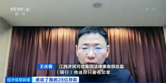 江西濟民可信集團法律事務部總監(jiān)王慶春:“(銀行)他說你只要有印章,能在驗印系統(tǒng)里通過,它就視為我們企業(yè)的人來辦的這個事”
